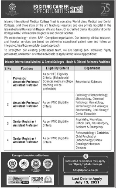 RIU - Riphah International University Jobs, Teaching/Faculty & Management Positions July 2021