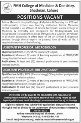 FMH College of Medicine & Dentistry Jobs, Teaching/Faculty Positions July 2021