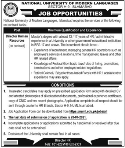 NUML - National University of Modern Languages Jobs, Management Positions July 2021