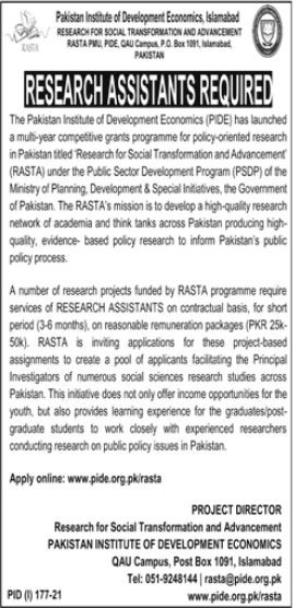 PIDE - Pakistan Institute of Development Economics Jobs, Management Positions July 2021