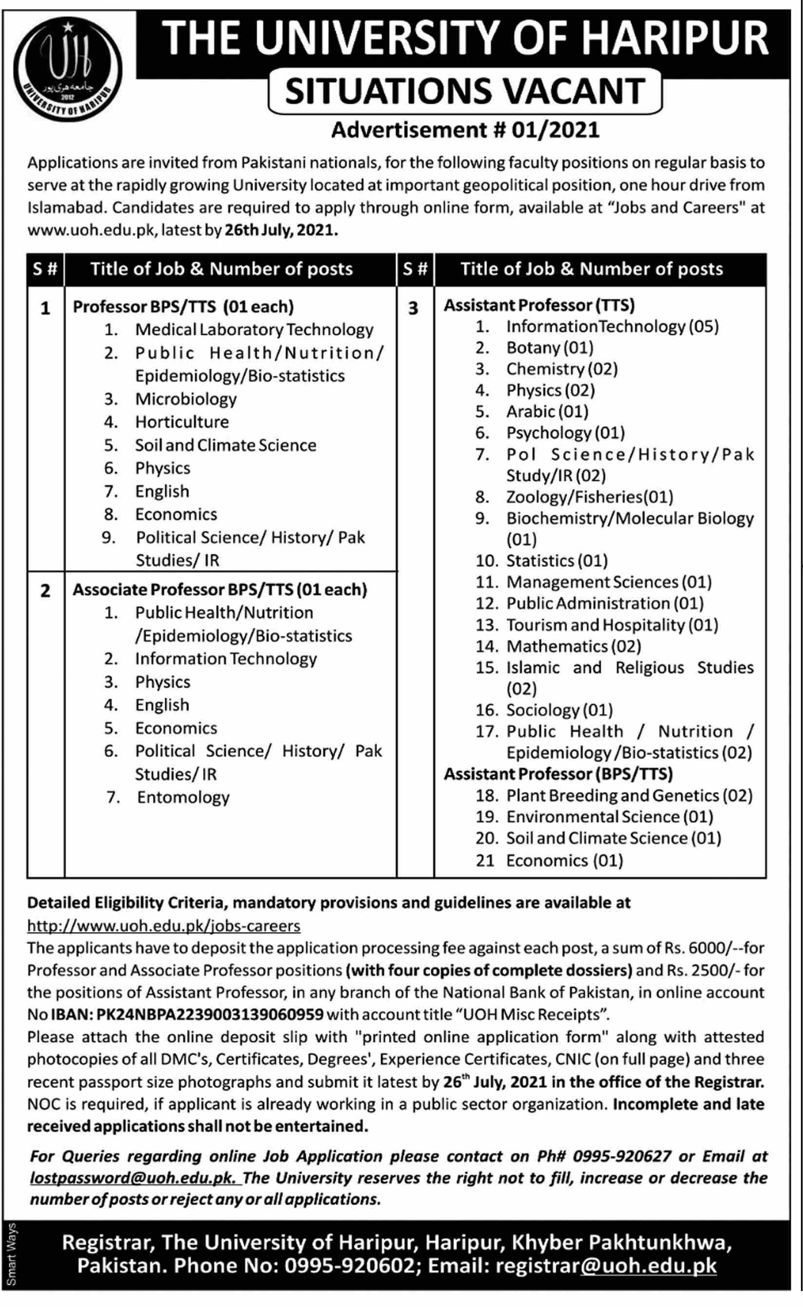 UOH - The University of Haripur Jobs, Teaching/Faculty Positions July 2021