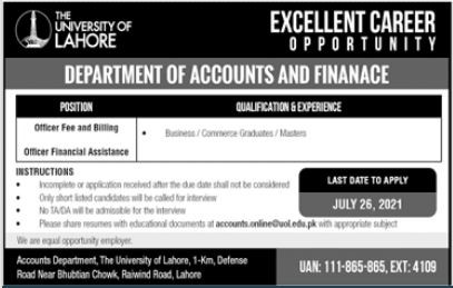 UOL - The University of Lahore Jobs, Management Positions July 2021