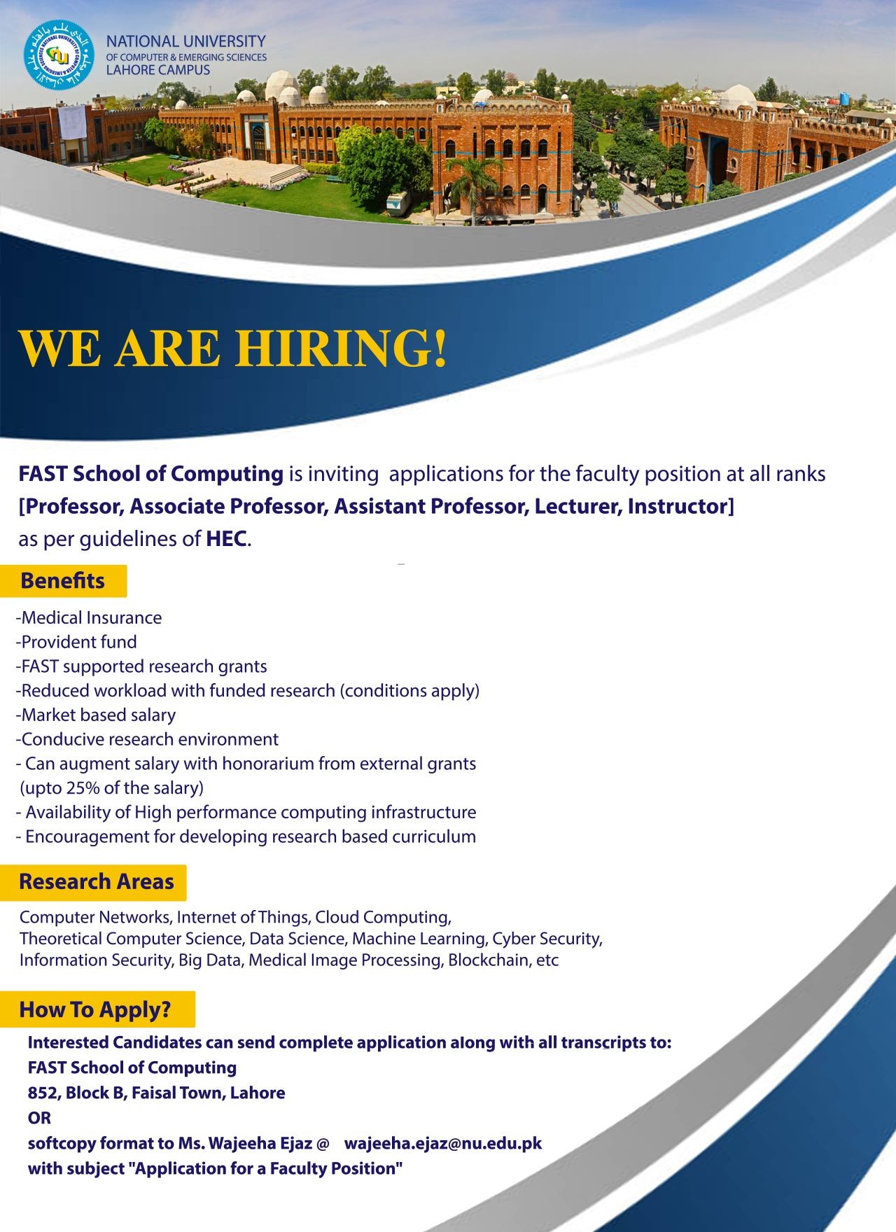 FAST National University Islamabad Jobs, Teaching/Faculty Positions July 2021