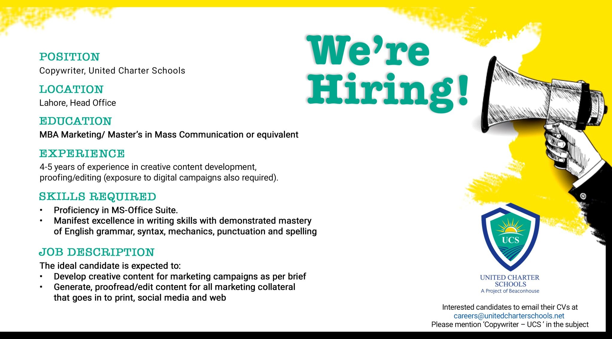 UCS - United Charter School Jobs, Management Positions July 2021