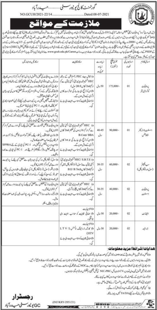 Government College University Hyderabad Jobs, Management Positions July 2021