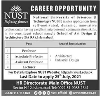 National University of Sciences and Technology Jobs, Teaching/Faculty Positions July 2021