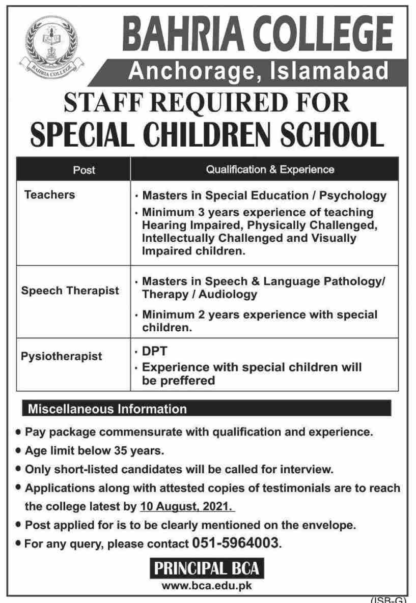 Bahria College Jobs, Teaching/Faculty & Management Positions July 2021