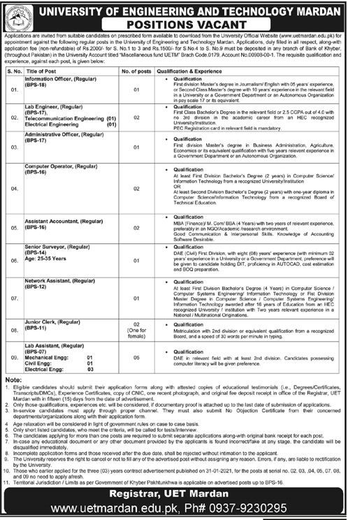 UET - University of Engineering & Technology Mardan Jobs, Management Positions July 2021