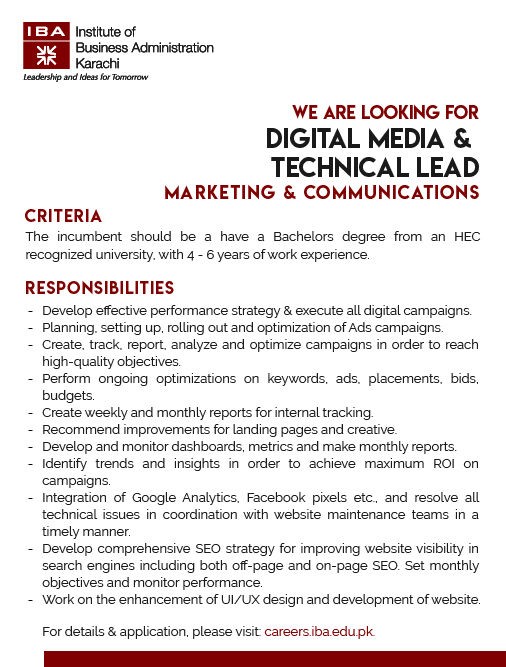 WE ARE LOOKING FOR DIGITAL MEDIA & TECHNICAL LEAD MARKETING & COMMUNICATIONS