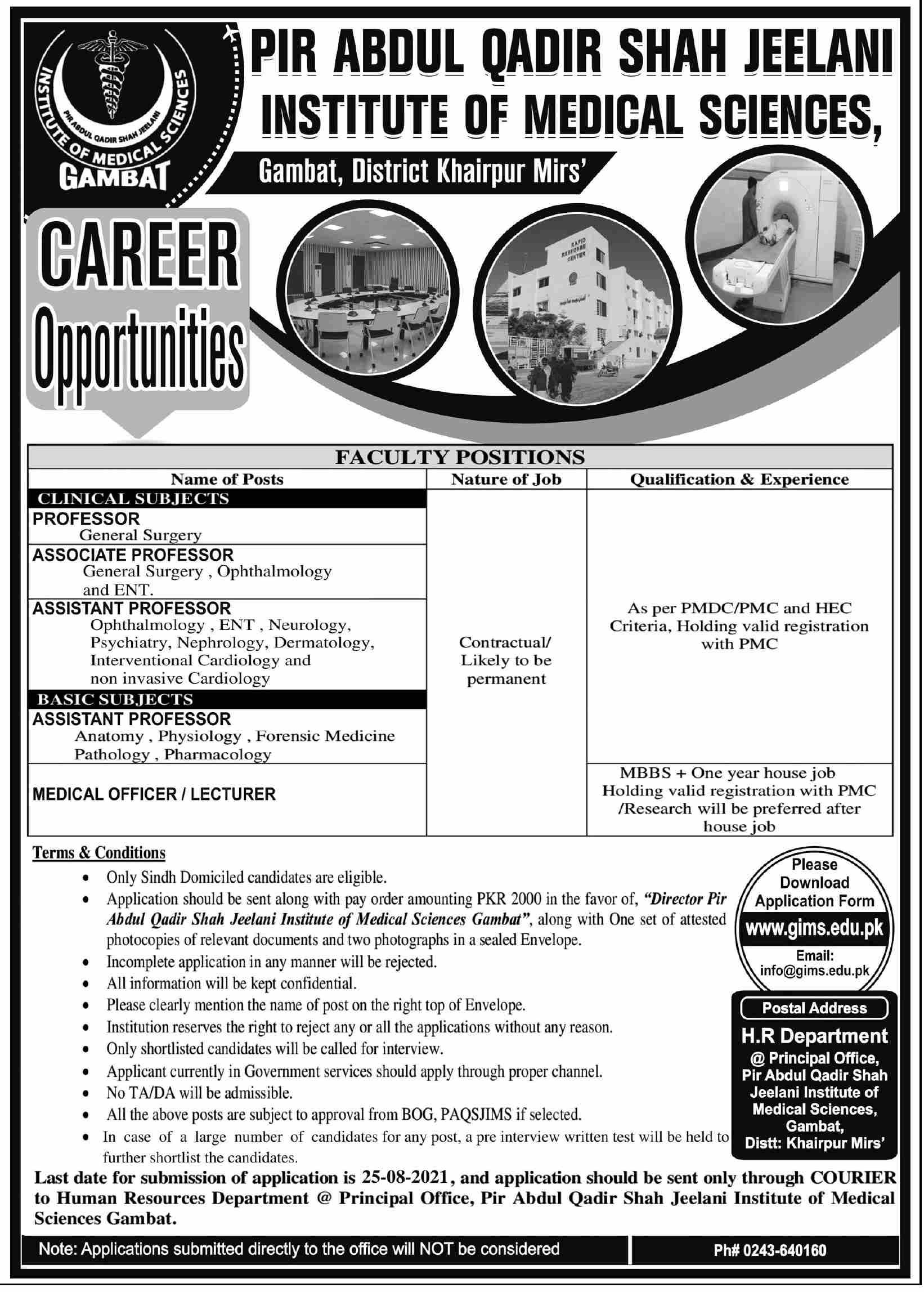 H.R Department @ Principal Office, Pir Abdul Qadir Shah Jeelani Institute of Medical Sciences, Gambat, Distt: Khairpur Mirs'