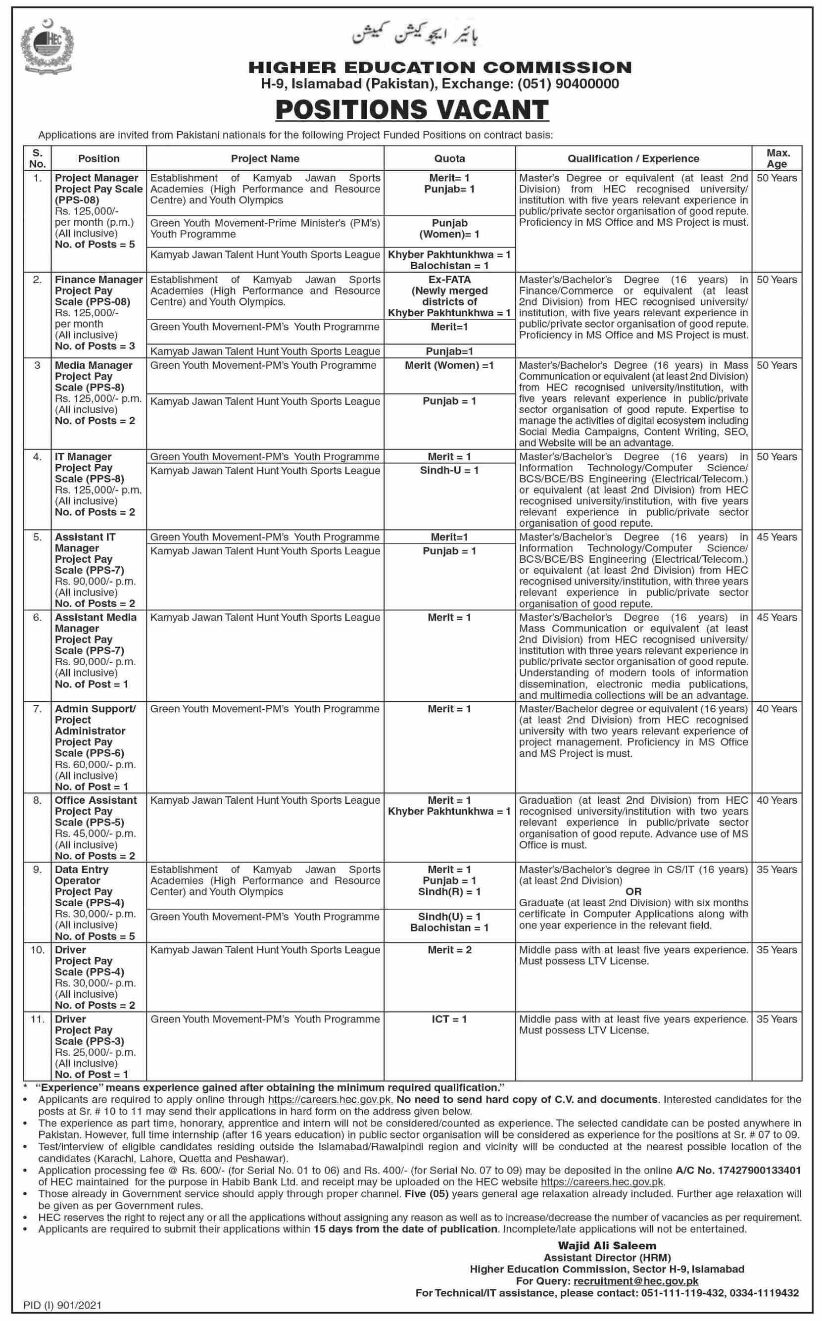 HEC -Higher Education Commission Jobs, Management Positions August 2021