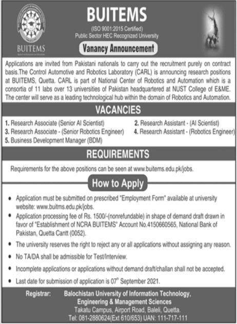 BUITEMS-Balochistan University of Information Technology, Engineering and Management Sciences Jobs, Management Positions August 2021