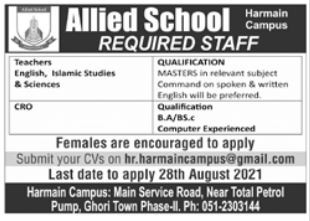 Allied School Jobs, Teaching/Faculty & Management Positions August 2021