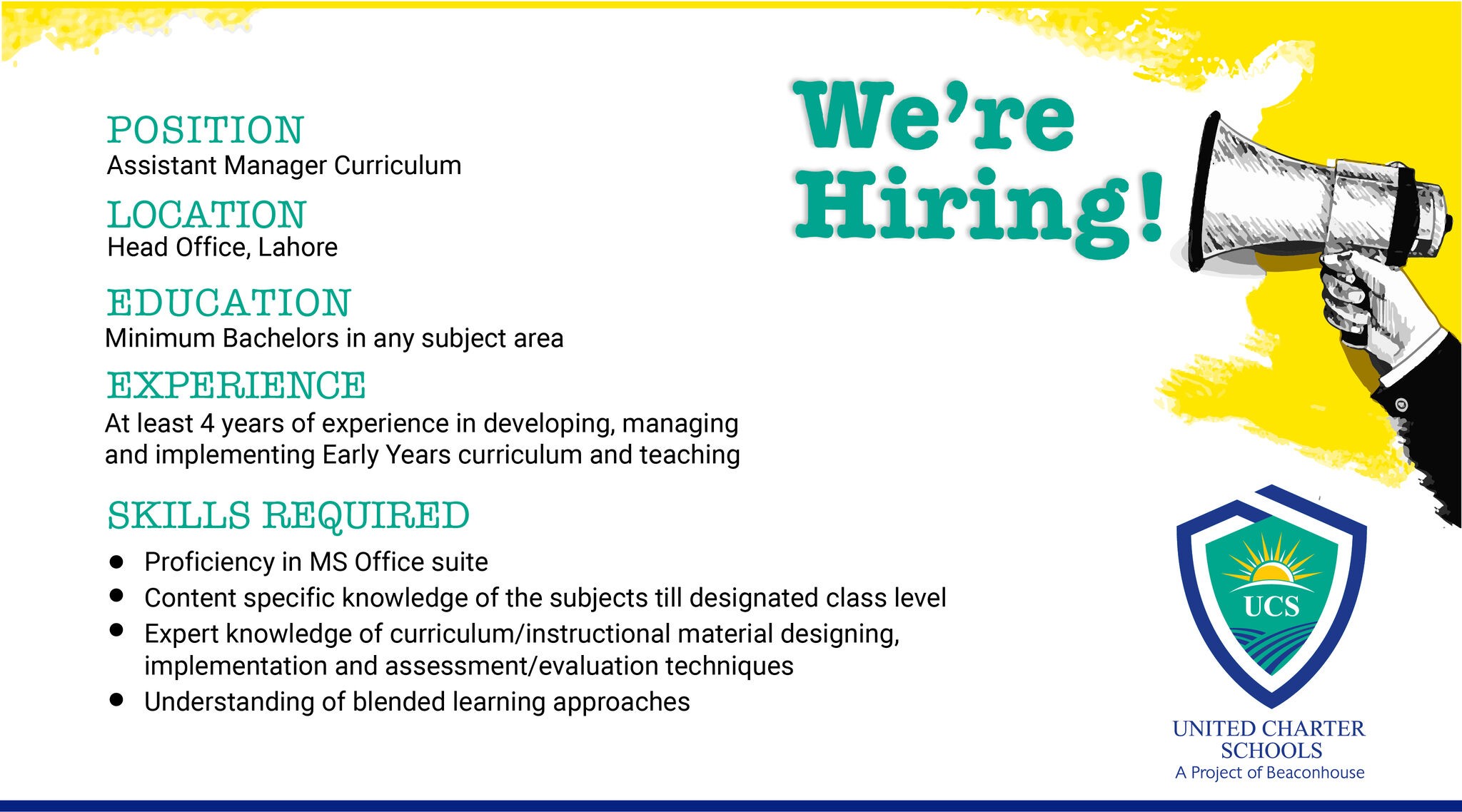EXPERIENCE At least 4 years of experience in developing, managing and implementing Early Years curriculum and teaching
