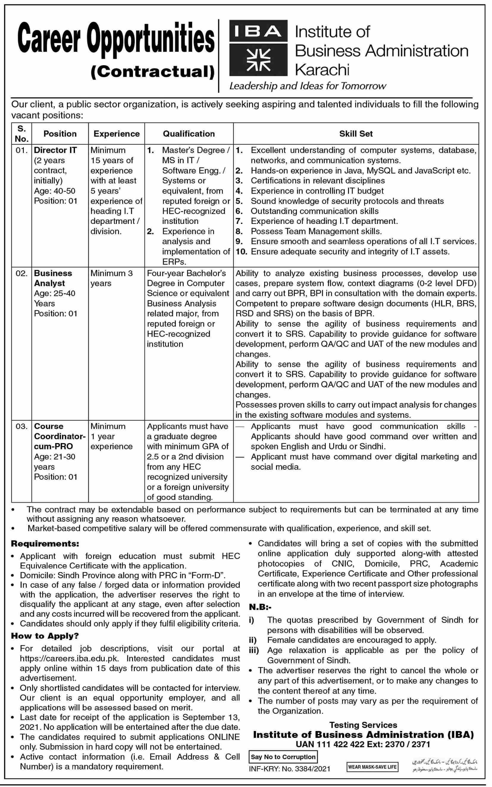 IBA- Institute of Business Administration Jobs, Management Positions August 2021